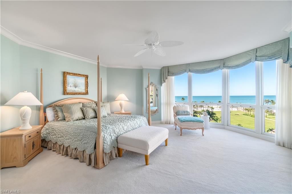 Located within the highly coveted Brittany Condominium in Park Shore, this exceptional 06-stack residence captures the essence of Naples beachfront living with 3,393 square feet of beautifully maintained interiors and breathtaking views of the Gulf, Venetian Bay, and the sparkling city skyline. The thoughtfully designed 3-bedroom plus den, 3.5-bath layout welcomes natural light through floor-to-ceiling windows and dual balconies, creating a seamless flow between the indoors and outdoors from sunrise over the bay to sunset across the Gulf. The primary ensuite features unobstructed Gulf vistas, dual closets, and a serene retreat for relaxation, while each guest room is ensuite and offers ample storage, ensuring comfort and privacy for family and visitors alike. The open living and dining areas connect effortlessly to the west-facing lanai, providing the perfect backdrop for entertaining. A separate breakfast nook complements the well-appointed kitchen, designed for both function and sophistication. Additional features include zoned HVAC, electric storm shutters, two secured covered parking spaces, and private storage. The Brittany offers an unparalleled lifestyle with resort-style beachfront amenities including a spectacular pool and spa, fitness center, tennis courts, guest suites, and 24-hour security. Perfectly positioned near Venetian Village, Waterside Shops, and the cultural charm of downtown Naples, this residence embodies the very best of coastal luxury living.