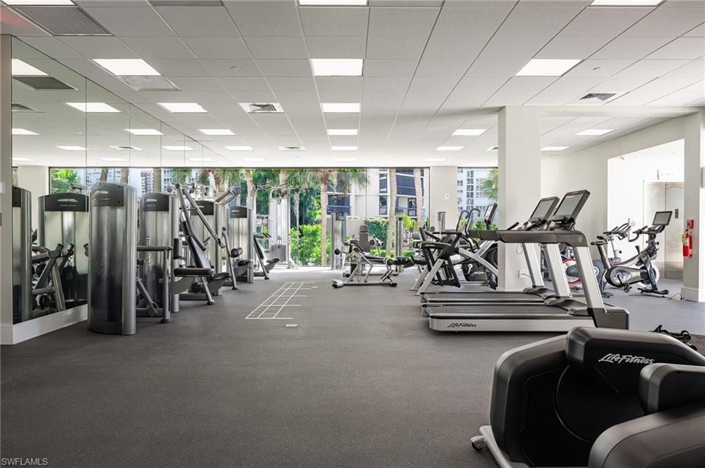 A rare offering at The Enclave, where prestigious beachfront living has been reimagined, this just completed 2025 renovation showcases panoramic views of the Gulf, Bay, and city skyline and epitomizes modern coastal sophistication. Spanning over 6,300 square feet under air, the 4-bedroom plus den residence with a bonus room features herringbone wood flooring, Calacatta Gold quartz surfaces, and bespoke designer finishes throughout. The gourmet kitchen, featuring Miele appliances and dual Sub Zero refrigerators, serves as a stunning centerpiece for entertaining, complemented by open living spaces with a welcoming fireplace and a dining area with a wet bar complete with a Miele wine cooler and dual beverage drawers, perfect for gathering with family and friends. This unit includes an oversized 2-plus car garage. There are two lanais, one off the primary bedroom and a larger lanai off the living room and dining room, which features 180-degree north and south views from the building's first position on the beach. The larger lanai includes an outdoor kitchen setup, prewired and preplumbed for convenience, new glass railings, and the perfect vantage point for Gulf breezes and sunsets. Each guest suite is spacious and en suite with ample closet space. Additional features include a secure private elevator opening directly into the residence, gated entry, a den or home office with fireplace, zoned HVAC, electric hurricane shutters, and generous storage. Custom furnishings in luxurious fabrics and trims add to the residence's curated elegance, resulting in a timeless and refined design. The Enclave offers one of Naples' most exclusive beachfront lifestyles, with only one residence per floor and a soon to be completed total renovation of the public areas including a state-of-the-art fitness facility, a modernized social room, and a pool renovation with new deck and pavilion. A hurricane-resistant lobby and completely redesigned entry will arguably make The Enclave the best on the beach upon completion in 2026. Residents may also lease or purchase a boat slip at the Venetian Yacht Club.